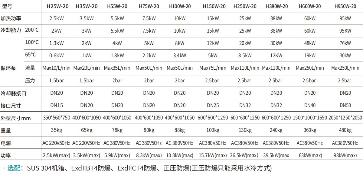 型號加熱功率冷卻能力循環泵冷卻器接口接口尺寸外型尺寸mm重量電源功率